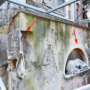Εκεί, στη βάση του μιναρέ, η Ιταλική Αρχαιολογική Υπηρεσία (1937-1938) σε συνεννόηση με την μουσουλμανική Κοινότητα τοποθέτησαν τη μαρμάρινη λεοντή, στη γωνία του μιναρέ και το ακέφαλο μαρμάρινο λιοντάρι σε ειδικά διαμορφωμένη κόγχη.